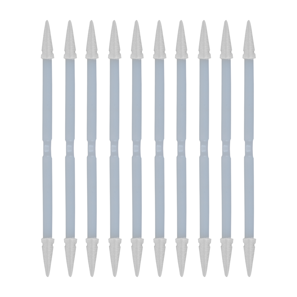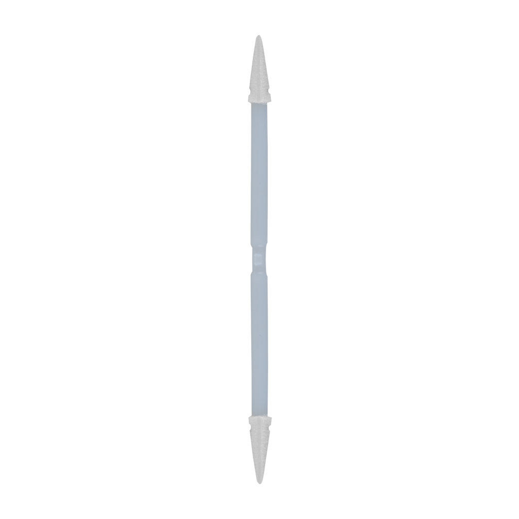 The ESD cleanroom swab with dual-point design has been developed for precise cleaning tasks in ISO-7 classified cleanrooms (Cleanliness Class 10,000). With its controlled foam structure, electrostatic discharge capability, and defined dimensions, this swab enables effective and reproducible cleaning of sensitive components, hard-to-reach openings, and delicate surfaces.