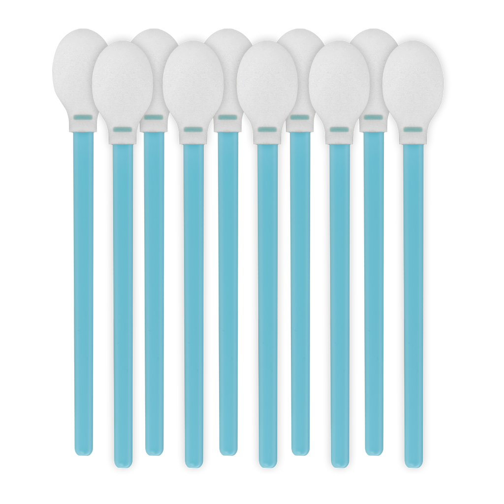 The Foam Cleanroom swabs are delivered in a packaging unit of 100 swabs per pack. The packaging design is intended for low-contamination storage and retrieval to ensure defined purity requirements until use.