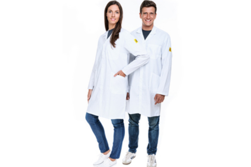 Berufs- und Labormäntel, Jacken, Polos und Hosen aus leitfähigem Garn- bzw. Gewebeaufbau. Geeignet für Einsatz in Reinräumen, Elektronikproduktion und sensiblen Montagebereichen.