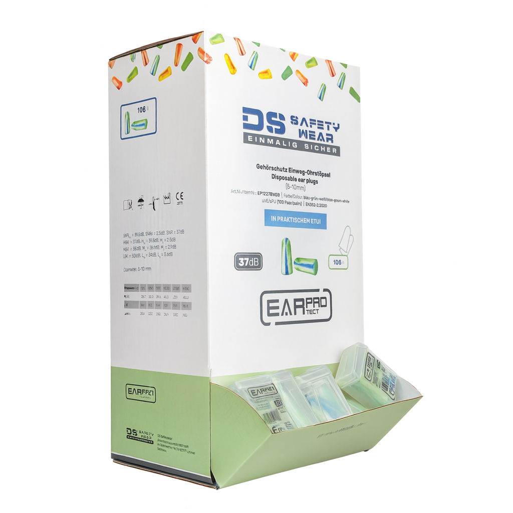 - Enthält Einweg-Ohrstöpsel aus PU-Schaum