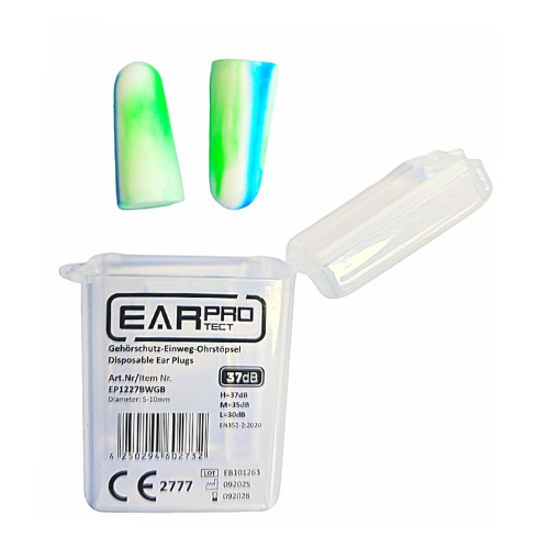 Das EarProtect Set kombiniert hochwertigen Einweg-Gehörschutz aus weichem PU-Schaum mit einem robusten Kunststoff-Etui zur hygienischen Aufbewahrung. Die Ohrstöpsel bieten dank ihrer konischen Form und der glatten Oberfläche einen sehr guten Tragekomfort und passen sich angenehm dem Gehörgang an.